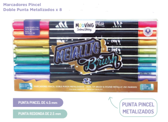 MARCADOR MOOVING METALICO D. PUNTA PINCEL x 8 COL. - 3031308
