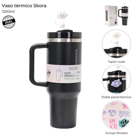 VASO TERMICO SKORA C/BOMBILLA NEGRO x 1.200 ML. - ART.37127