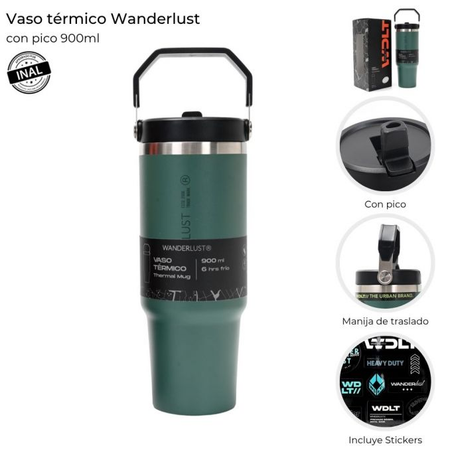 VASO TERMICO WANDERLUST C/PICO NEGRO x 900 ML. - ART39424