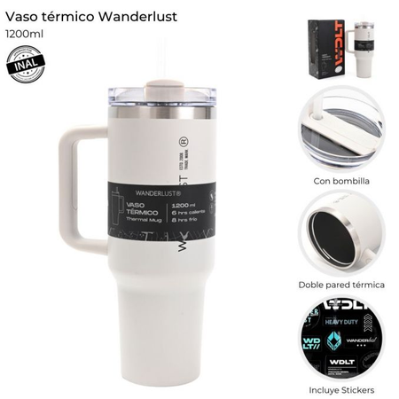 VASO TERMICO WANDERLUST C/BOMBILLA BLANCO x 1.200 ML. - ART40122