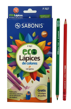 LAPICES DE COLOR SABONIS ECO LARGO C/GOMA x 12 + 1 COL.