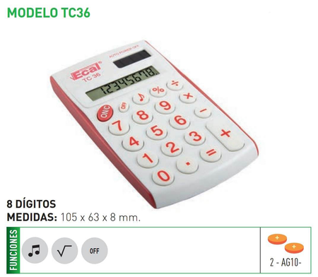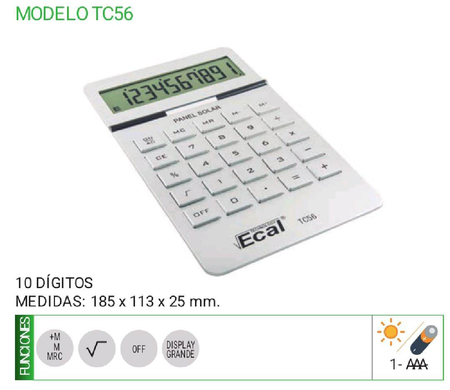 CALCULADORA ECAL TC56 GRANDE 10 DG. + 1 PILA