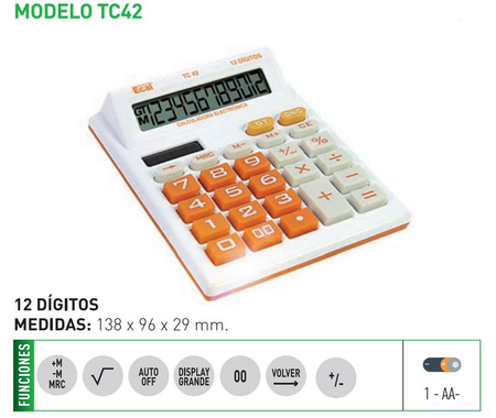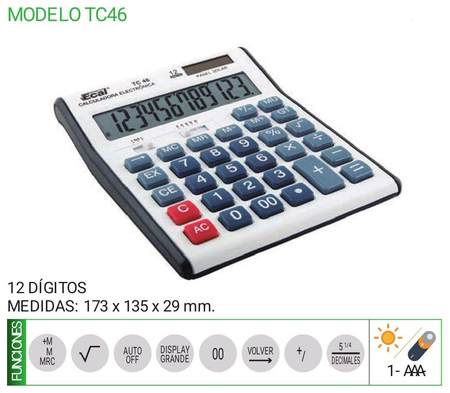 CALCULADORA ECAL TC46 GRANDE 12 DG. + 1 PILA