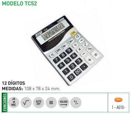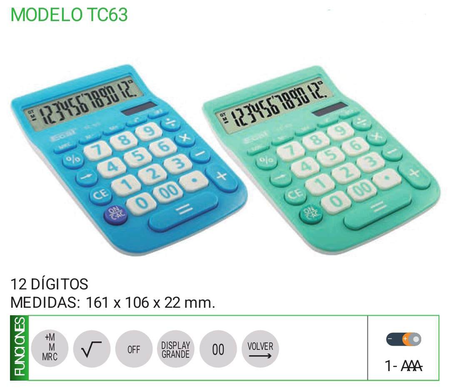 CALCULADORA ECAL TC63 MEDIANA 12 DG. + 1 PILA