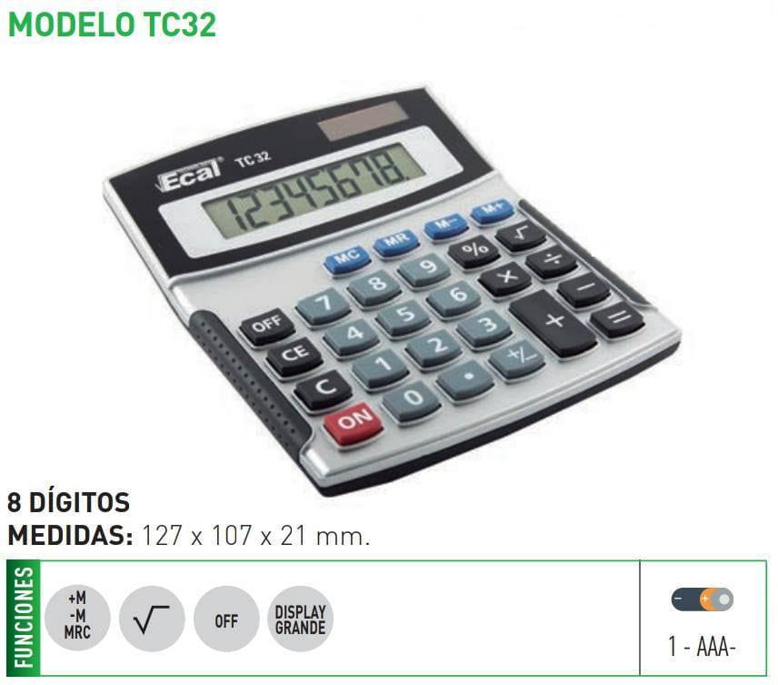 CALCULADORA ECAL TC32 MEDIANA + 1 PILA