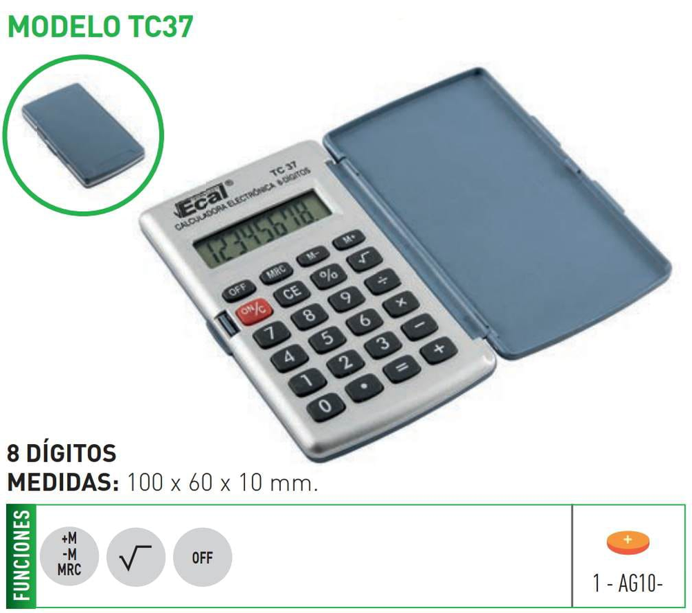 CALCULADORA ECAL TC37 BOLSILLO 8 DG. + 1 PILA