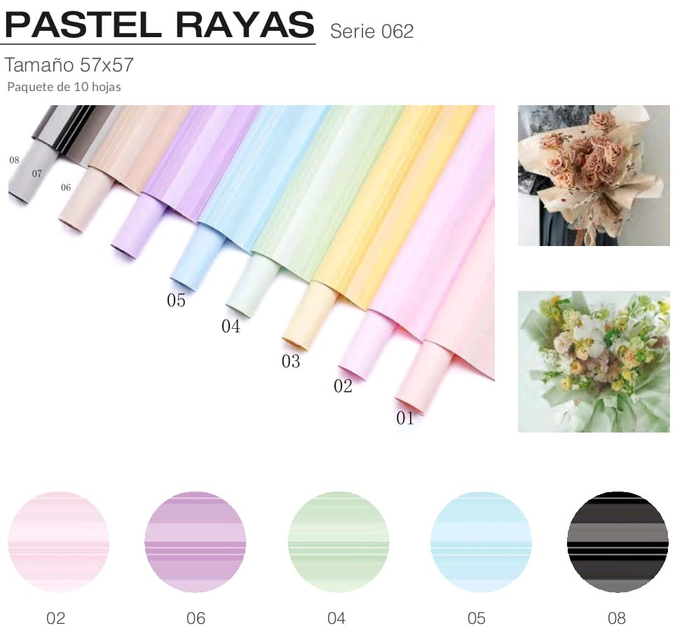 PAPEL COREANO REXON PASTEL RAYAS x 10 UN.