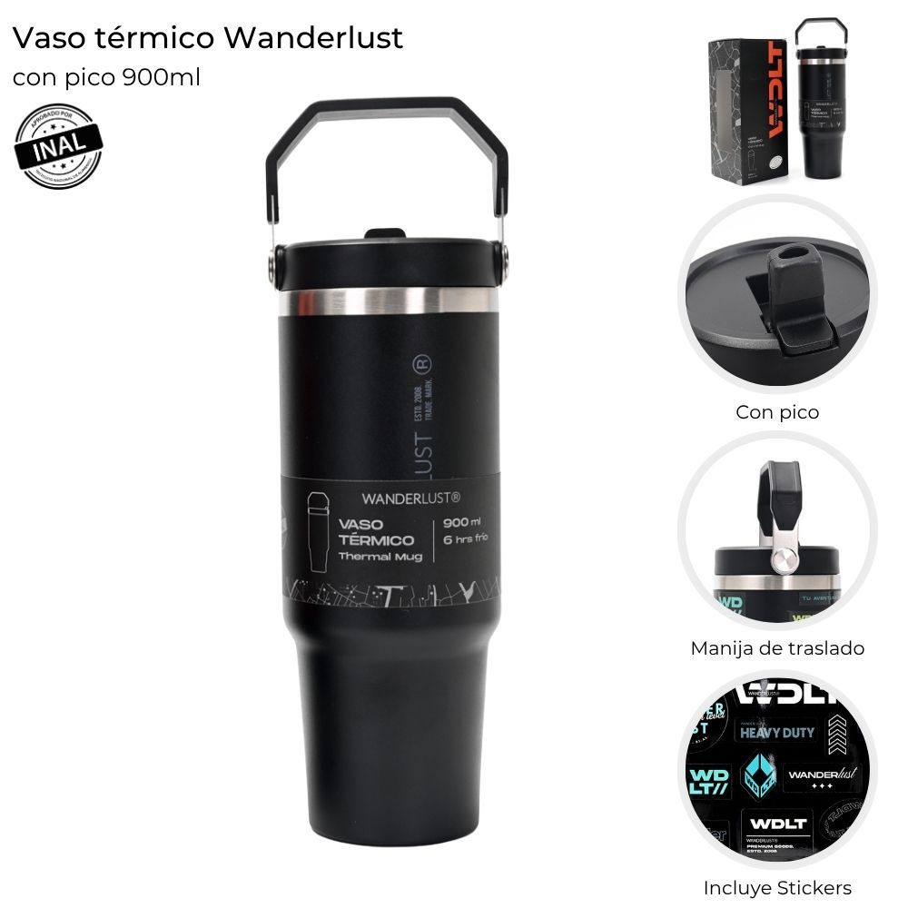 VASO TERMICO WANDERLUST C/PICO NEGRO x 900 ML. - ART39424