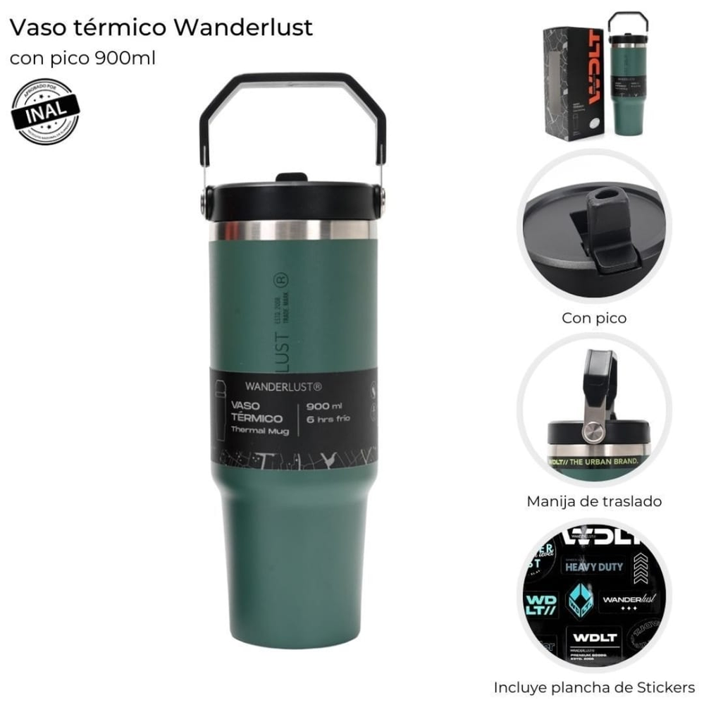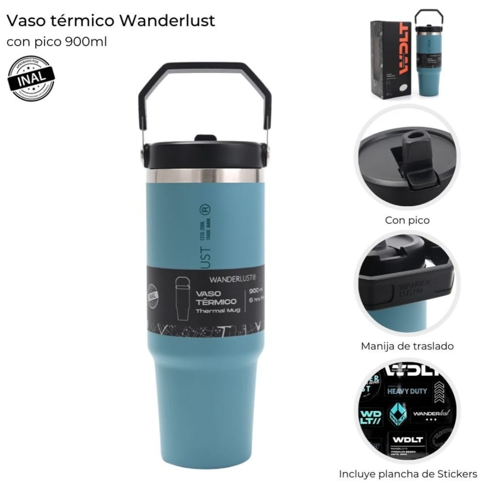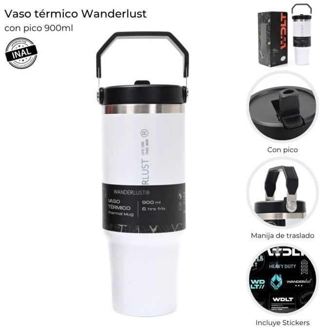 VASO TERMICO WANDERLUST C/PICO x 900 ML.
