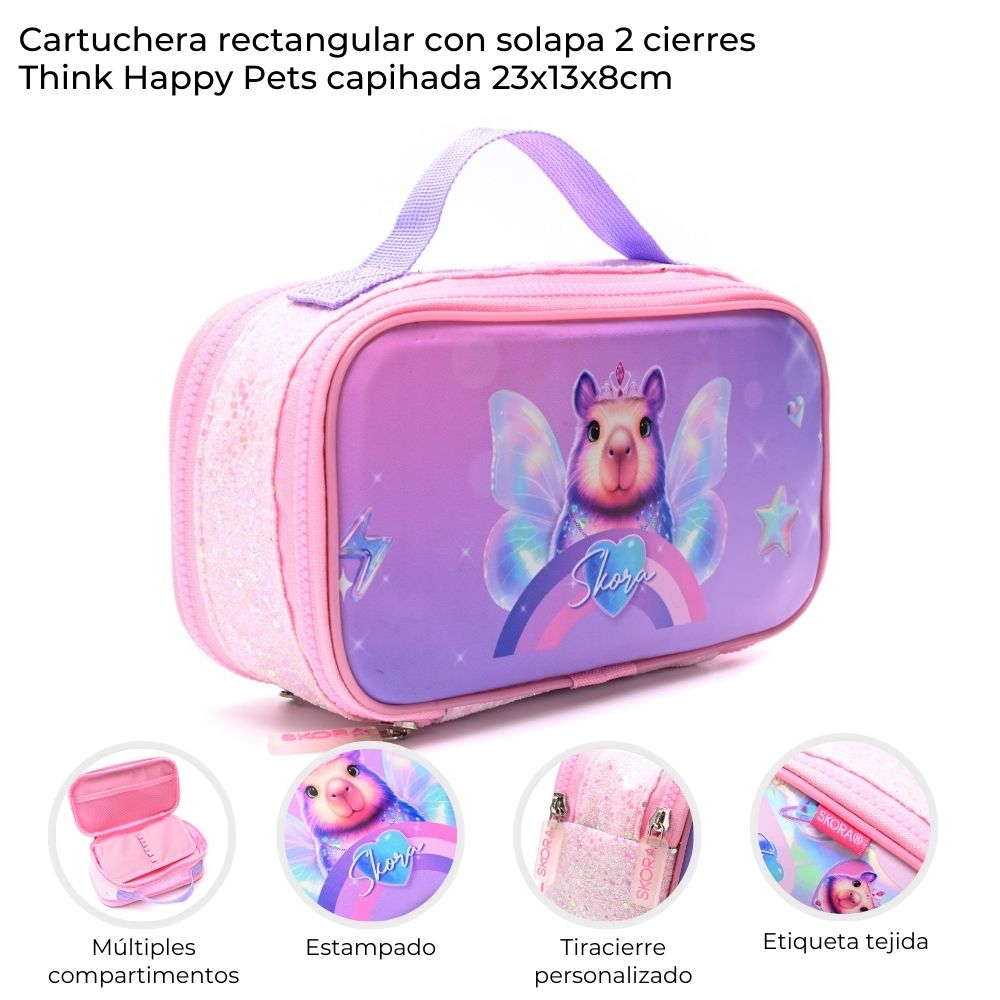 CARTUCHERA SKORA 2 CIERRES RECTANG. THINK HAPPY (43144)